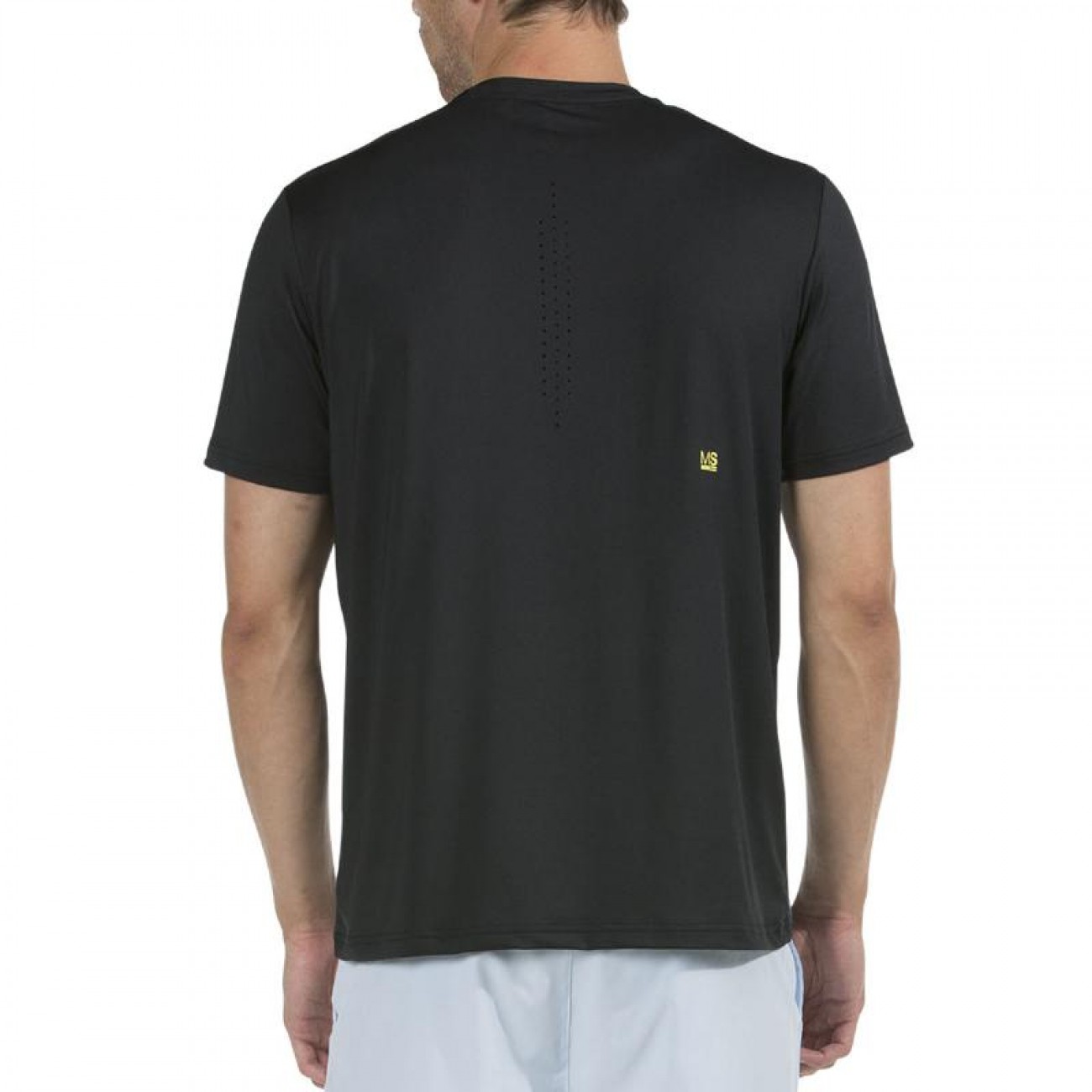 It is made of polyester mixed with elastane to promote freedom of movement and incorporates laser perforation in the back to help ventilation.