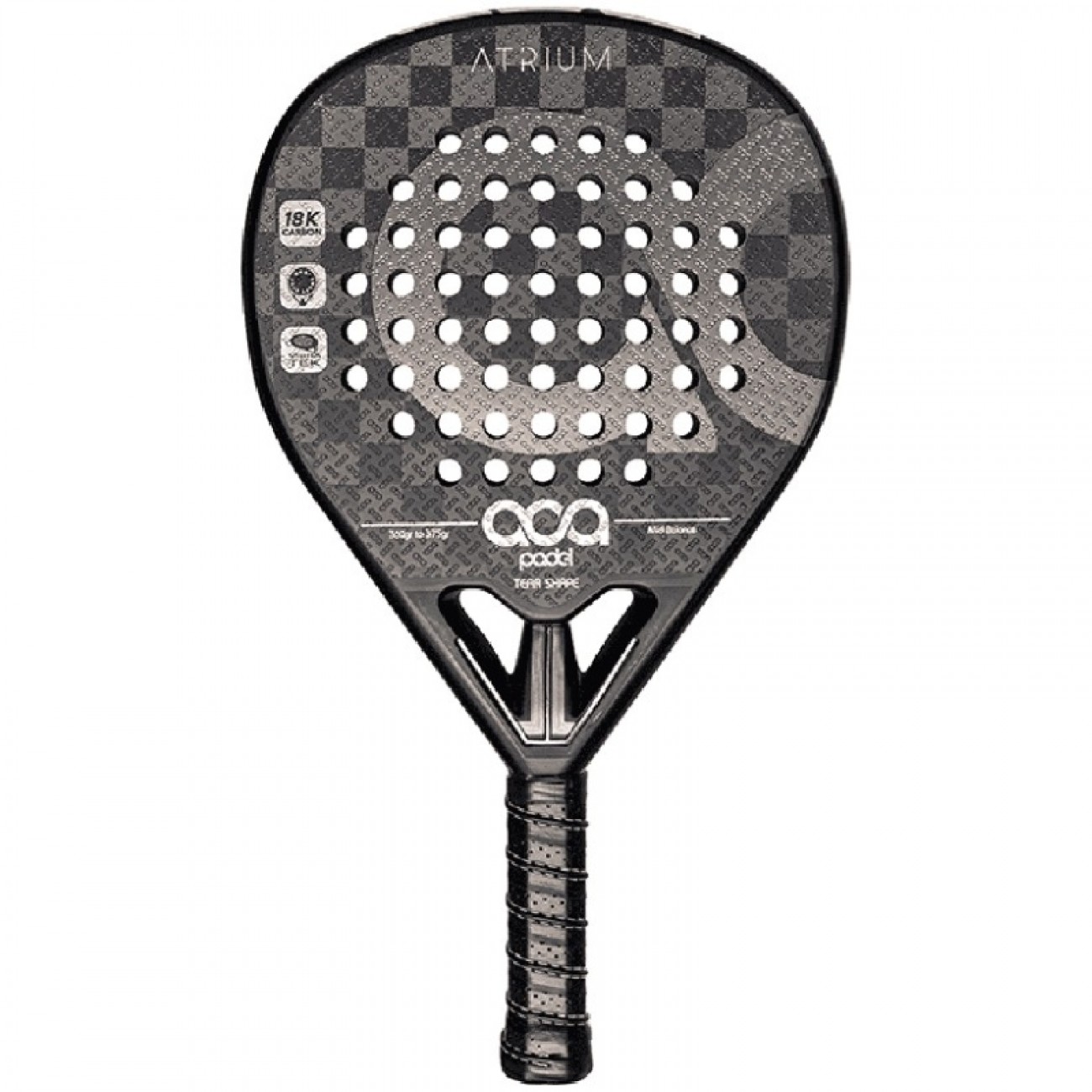 La ACA Atrium es la pala ideal para jugadores avanzados que buscan un juego equilibrado, con golpes potentes, efectos definidos y una estética que impone dentro de la pista.