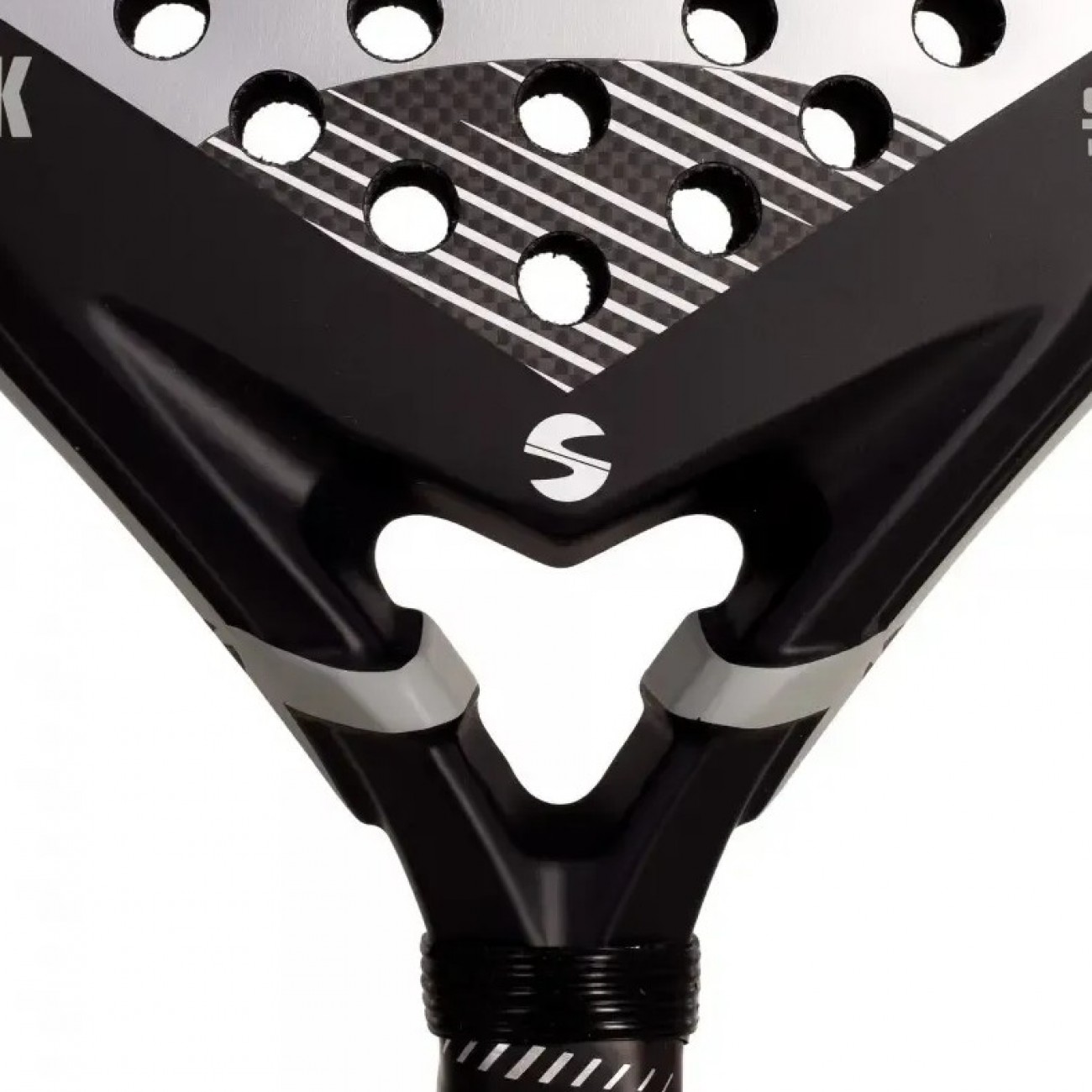 Carbono 3K en las caras, que mejora el tacto y permite una salida de bola explosiva, especialmente en golpes por encima de la cabeza.