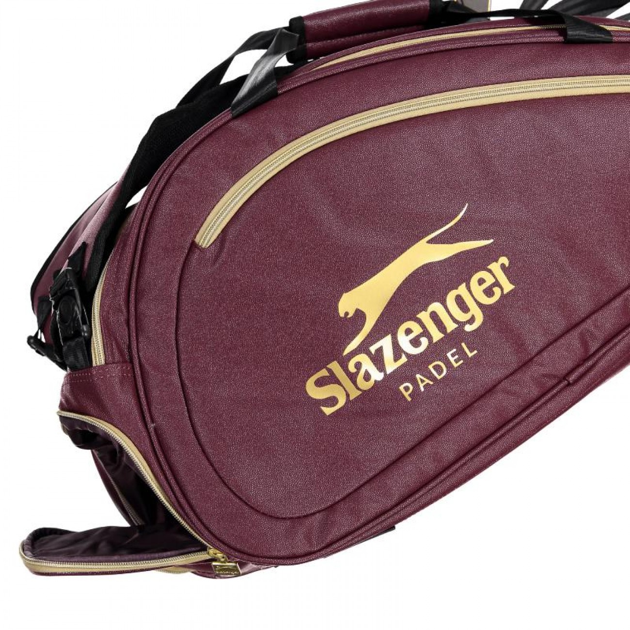 El bolso esta impermeabilizado con piel sintetica recubierta de PU y presenta los logos dorados de Slazenger Padel en ambos lados.