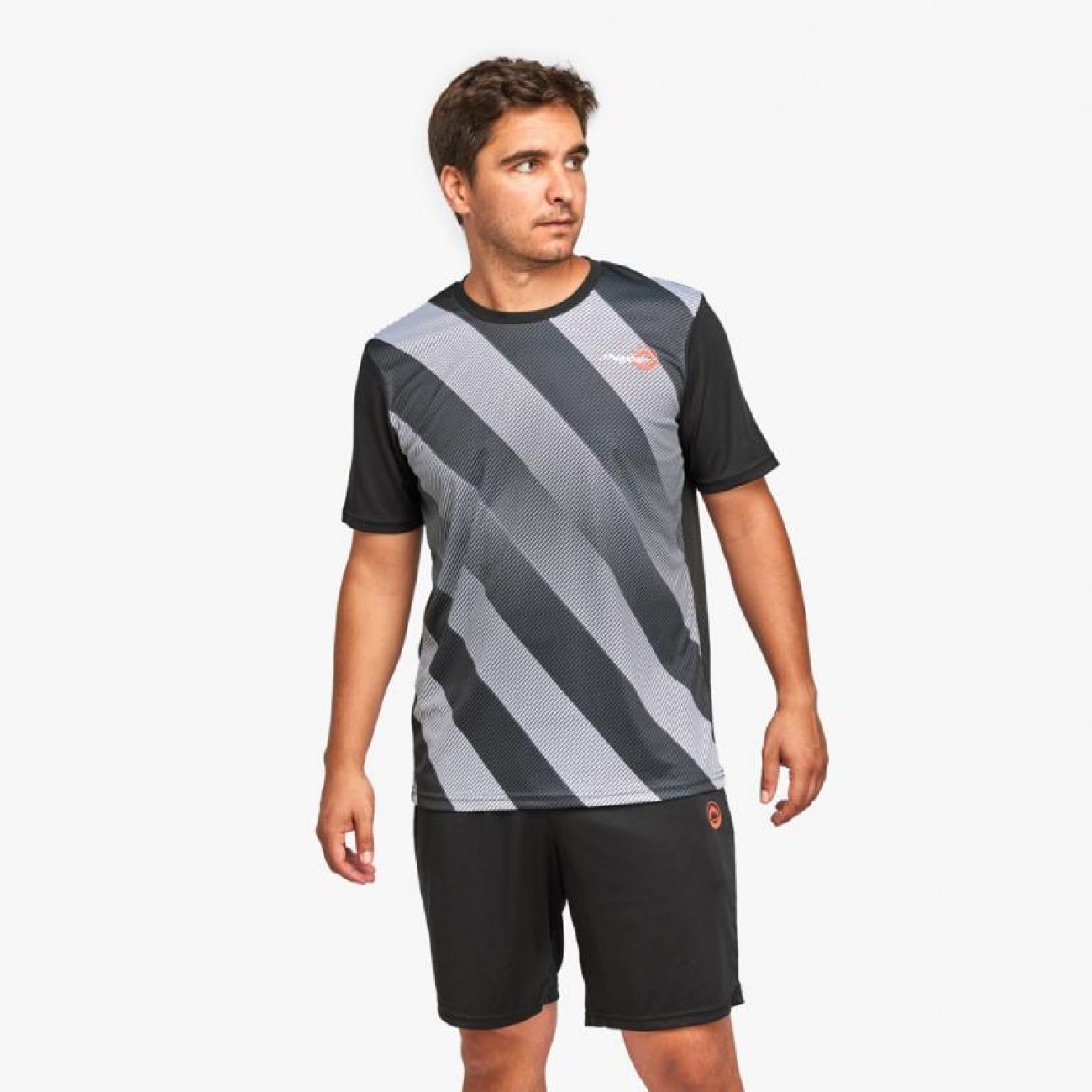Conjunto deportivo para hombre, modelo GLOW, compuesto por camiseta y pantalon corto.