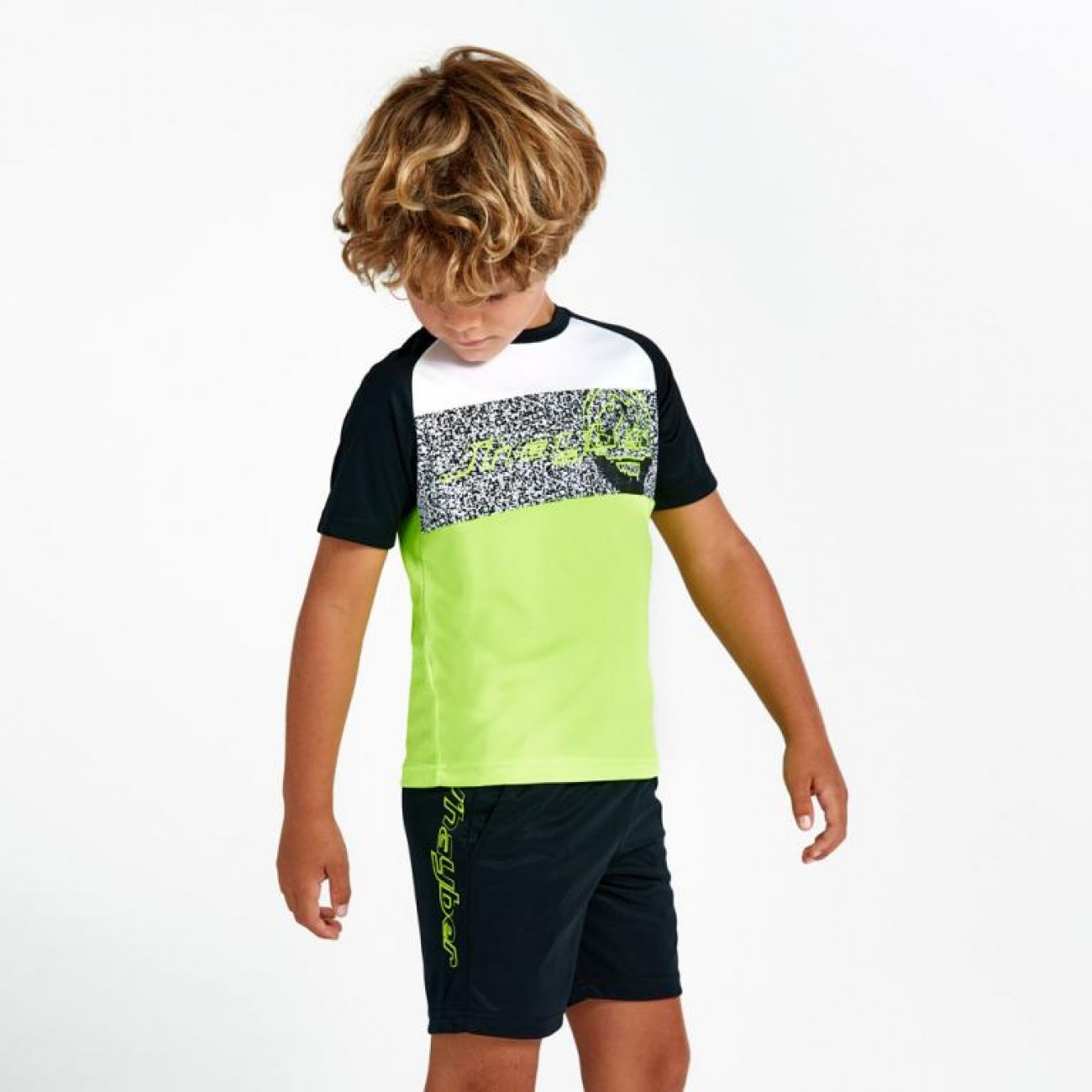 Conjunto deportivo para nino compuesto por camiseta y pantalon corto.